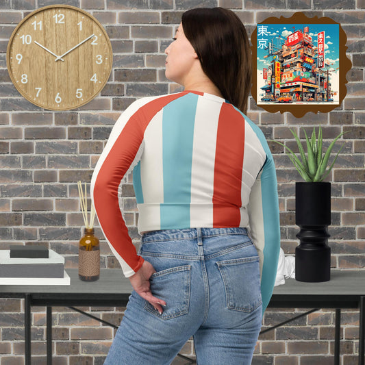 Blue Stripes Long-Sleeve Crop Top